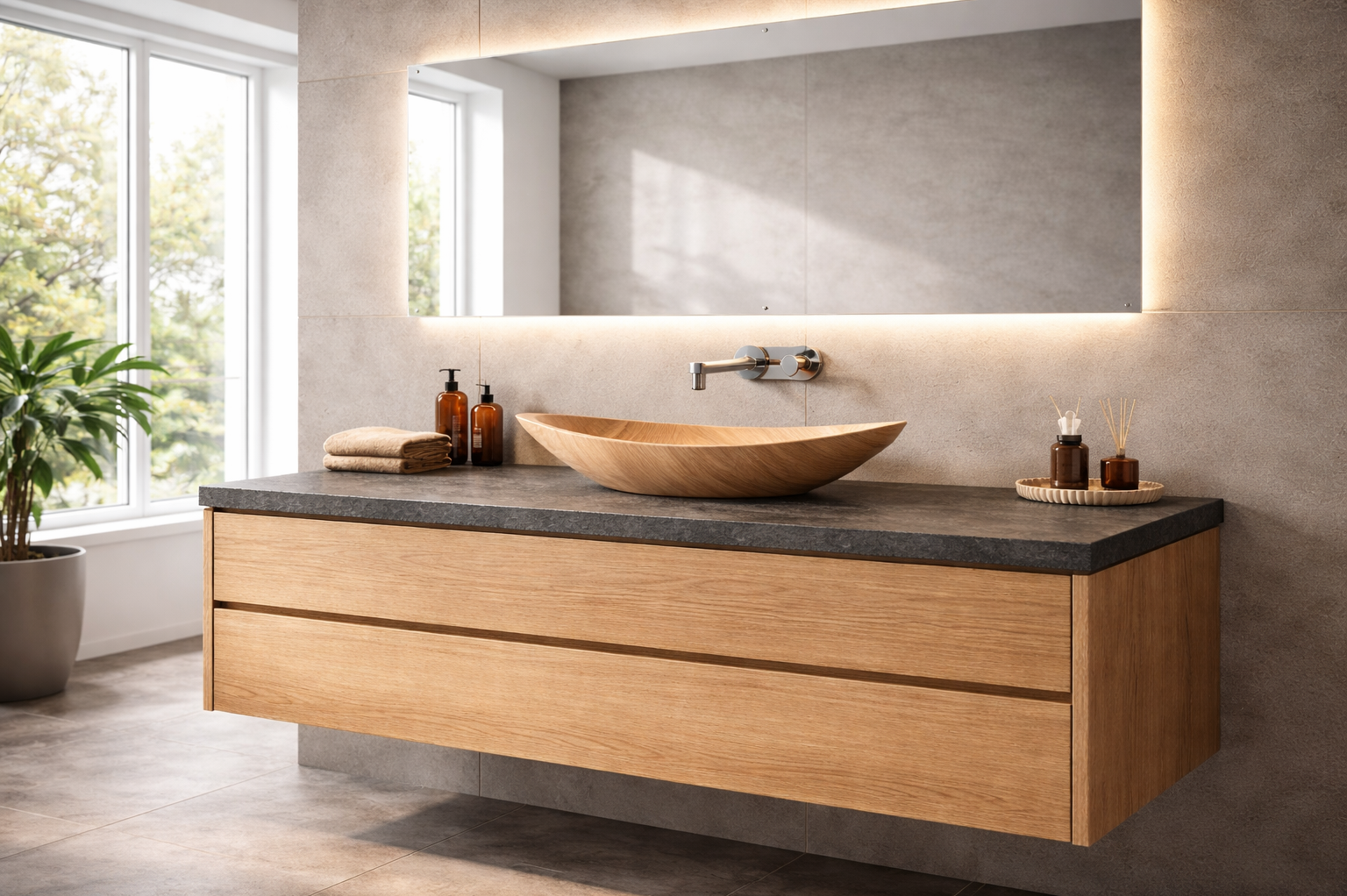 Die Waschbecken aus Holz verbinden natürliche Materialien mit präziser Handwerksarbeit. Jedes Becken wird sorgfältig aus ausgewählten Hölzern gefertigt und erhält durch die individuelle Maserung seinen eigenen Charakter. Die warme Haptik des Holzes und die ruhige Formensprache schaffen eine besondere Atmosphäre im Badezimmer – reduziert, natürlich und zeitlos. So entsteht ein Waschbecken, das nicht nur funktional ist, sondern dem Raum eine spürbare Wertigkeit verleiht.